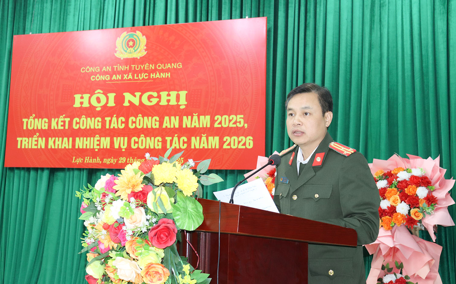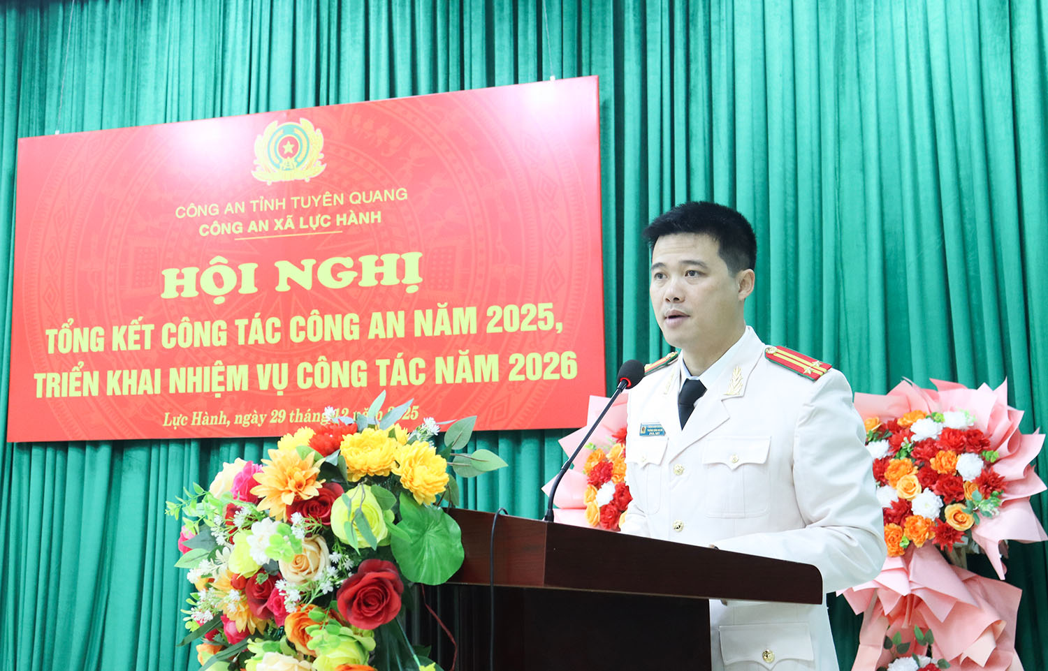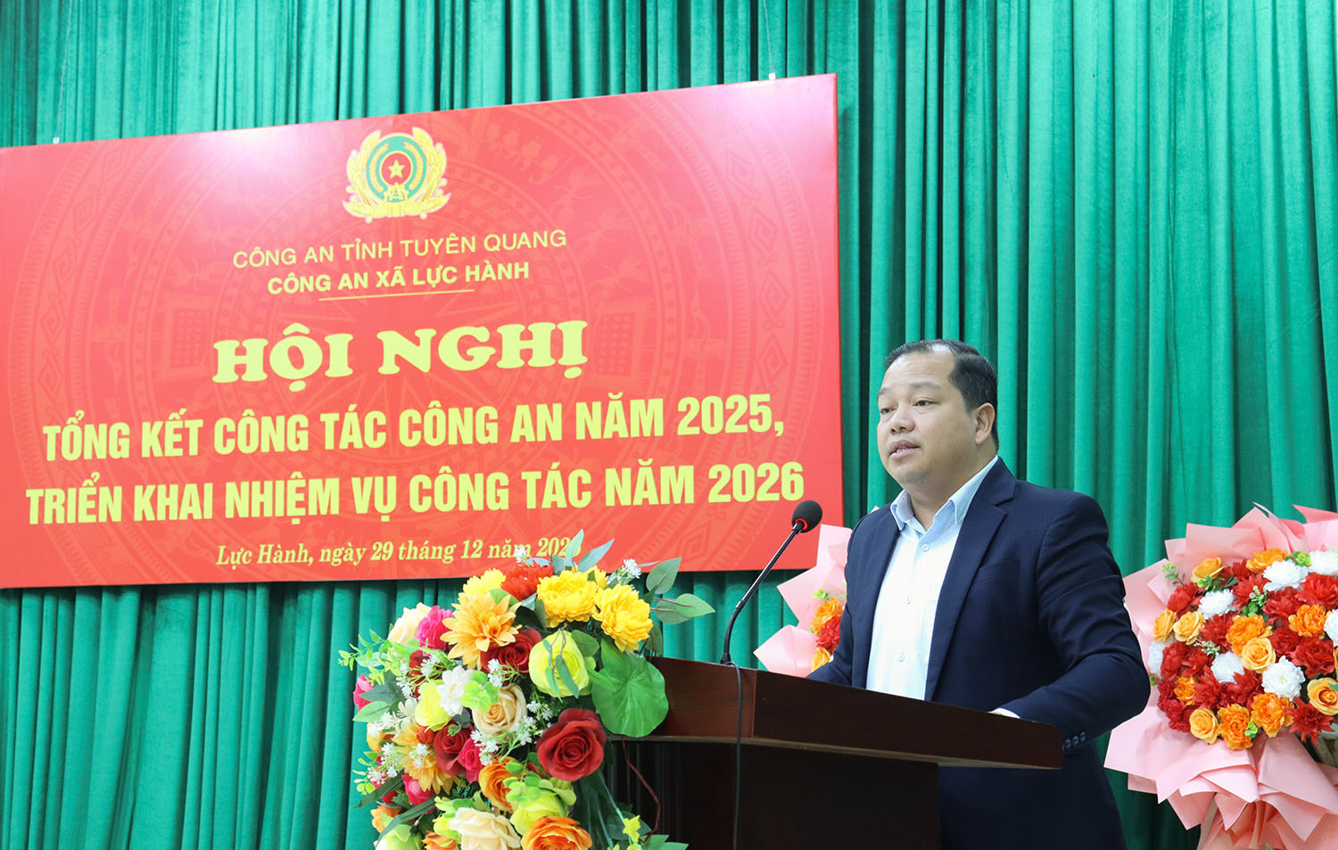 Phát biểu tại hội nghị đồng chí Trưởng Phòng Hậu cần Công an Tỉnh Tuyên Quang Thượng tá Chu Thế Anh, và đồng chí Chủ tịch UBND xã Chẩu Bình Yên đã ghi nhận và biểu dương những thành tích, cùng sự nỗ lực, cố gắng trong công tác đảm bảo ANTT và XDLL Công an xã trong năm qua; Đồng thời đề nghị trong năm 2026, Công an xã Lực Hành cần tập trung tham mưu, triển khai thực hiện hiệu quả công tác bảo đảm an ninh quốc gia, trật tự an toàn xã hội; chủ động phòng ngừa, đấu tranh ngăn chặn mọi âm mưu, thủ đoạn hoạt động của các thế lực thù địch, các loại tội phạm và các hành vi vi phạm pháp luật; phát động sâu rộng, hiệu quả phong trào toàn dân bảo vệ ANTQ góp phần ổn định tình hình an ninh chính trị, trật tự, an toàn xã hội trên địa bàn, tạo môi trường thuận lợi phát triển kinh tế - xã hội, đem lại bình yên, hạnh phúc cho Nhân dân.