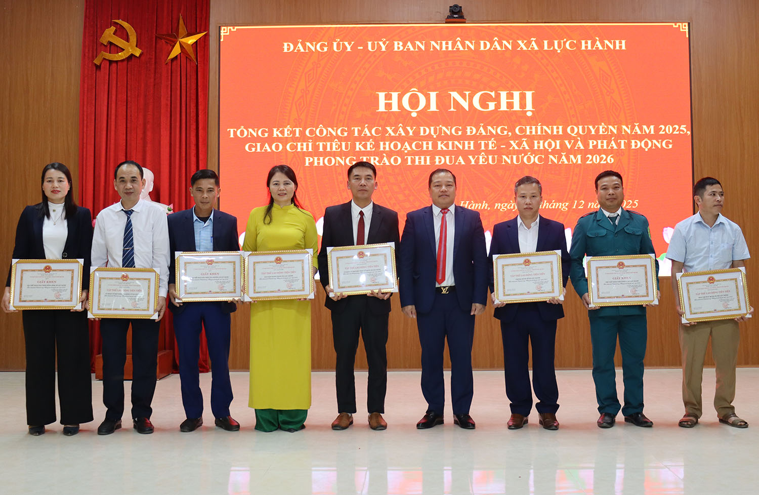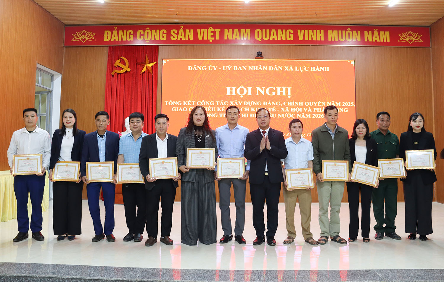 Nhân dịp này, Đảng ủy xã Lực Hành đã tặng Giấy khen cho 8 tổ chức cơ sở Đảng và 21 đảng viên hoàn thành xuất nhiệm vụ năm 2025; UBND xã đã tặng Giấy khen cho 10 tập thể và 36 cá nhân hoàn thành xuất nhiệm vụ năm 2025./.