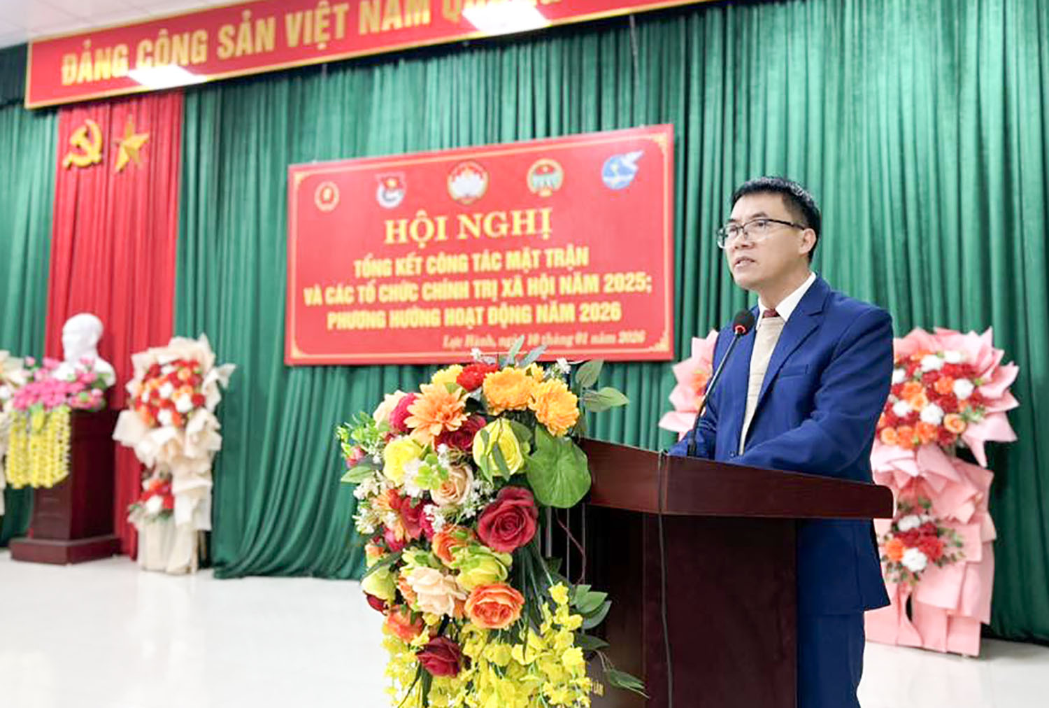 Chủ tịch Ủy ban MTTQ xã báo cáo kết quả thực hiện nhiệm vụ công tác Mặt trận và các tổ chức chính trị – xã hội trong năm 2025