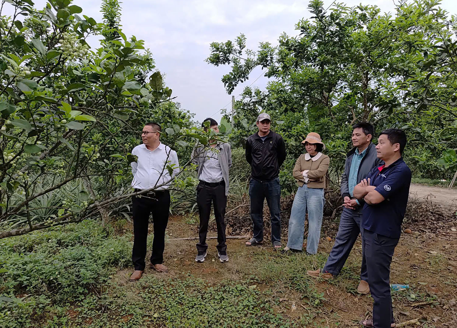 Đoàn công tác đến thăm vườn và làm việc tại hộ gia đình ông Bùi Văn Lộc thôn Minh Khai