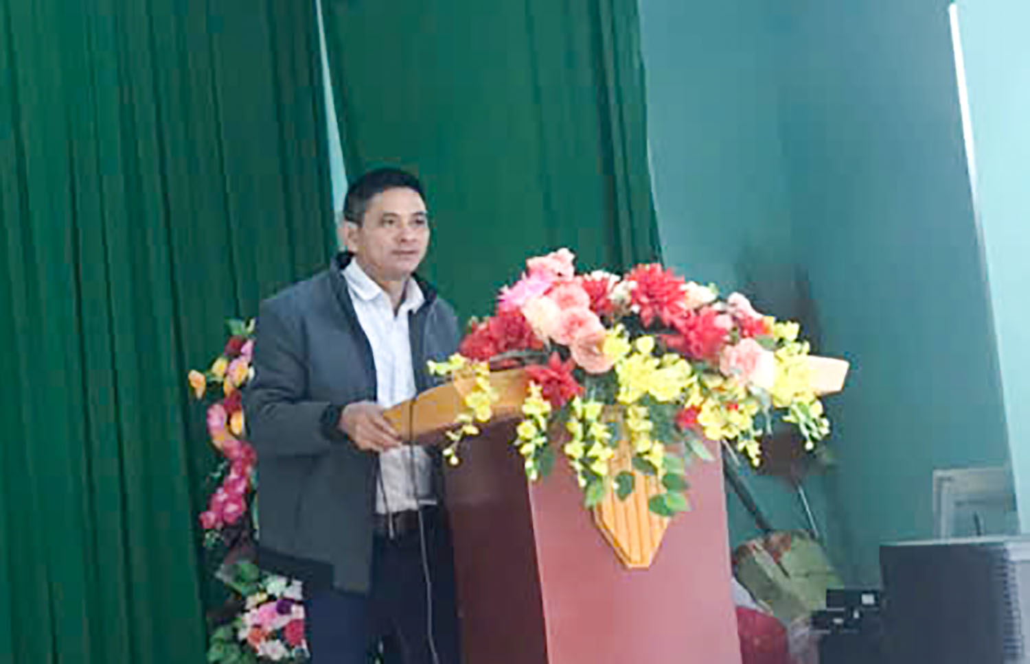 Viên chức Trung tâm Dịch vụ công xã Lực Hành truyền đạt các nội dung tập huấn