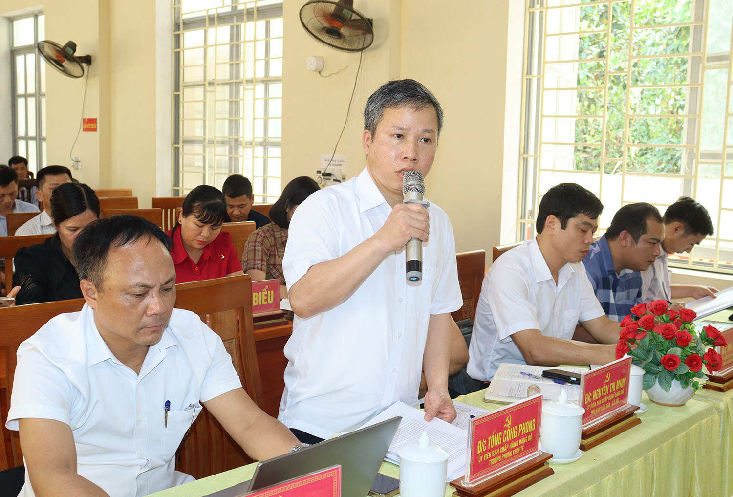 Chủ trì Hội nghị có các đồng chí: Lê Quang Toàn: Bí thư Đảng ủy, Chủ tịch HĐND xã; Nguyễn Quang Thắng: Phó Bí thư Thường trực Đảng ủy; Chẩu Bình Yên: Phó Bí thư Đảng ủy, Chủ tịch UBND xã.