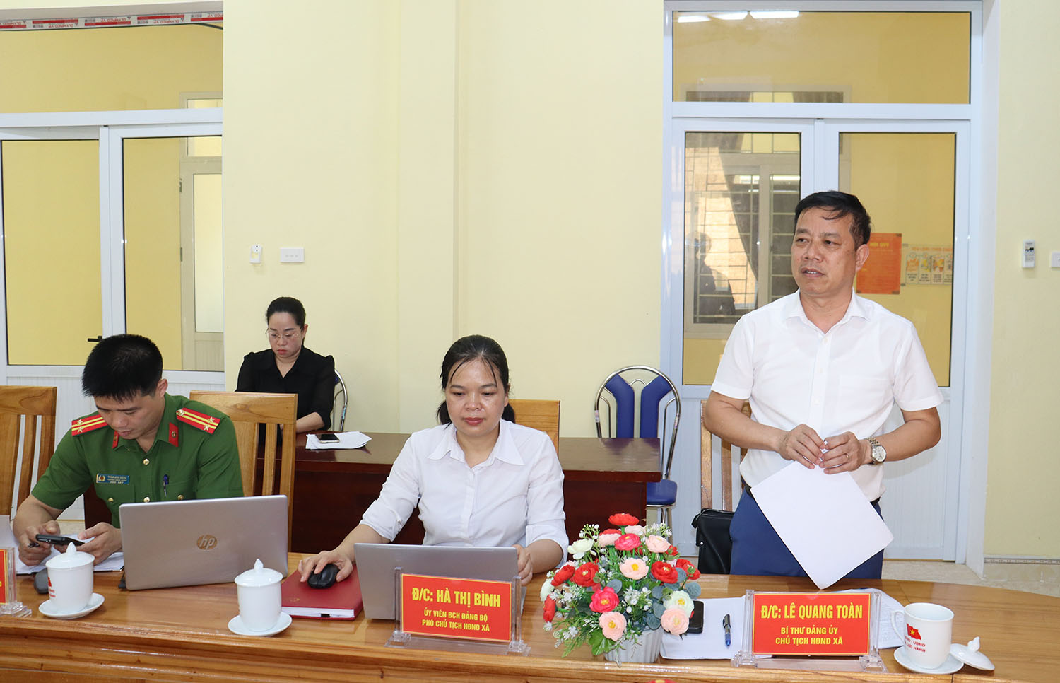 Tham dự phiên họp có đồng chí Lê Quang Toàn, Bí thư Đảng uỷ, Chủ tich HĐND xã; các đồng chí Thường trực HĐND, UBND, lãnh đạo Ủy ban MTTQ Việt Nam xã; các thành viên UBND xã cùng lãnh đạo các phòng chuyên môn và các cơ quan đơn vị của xã.