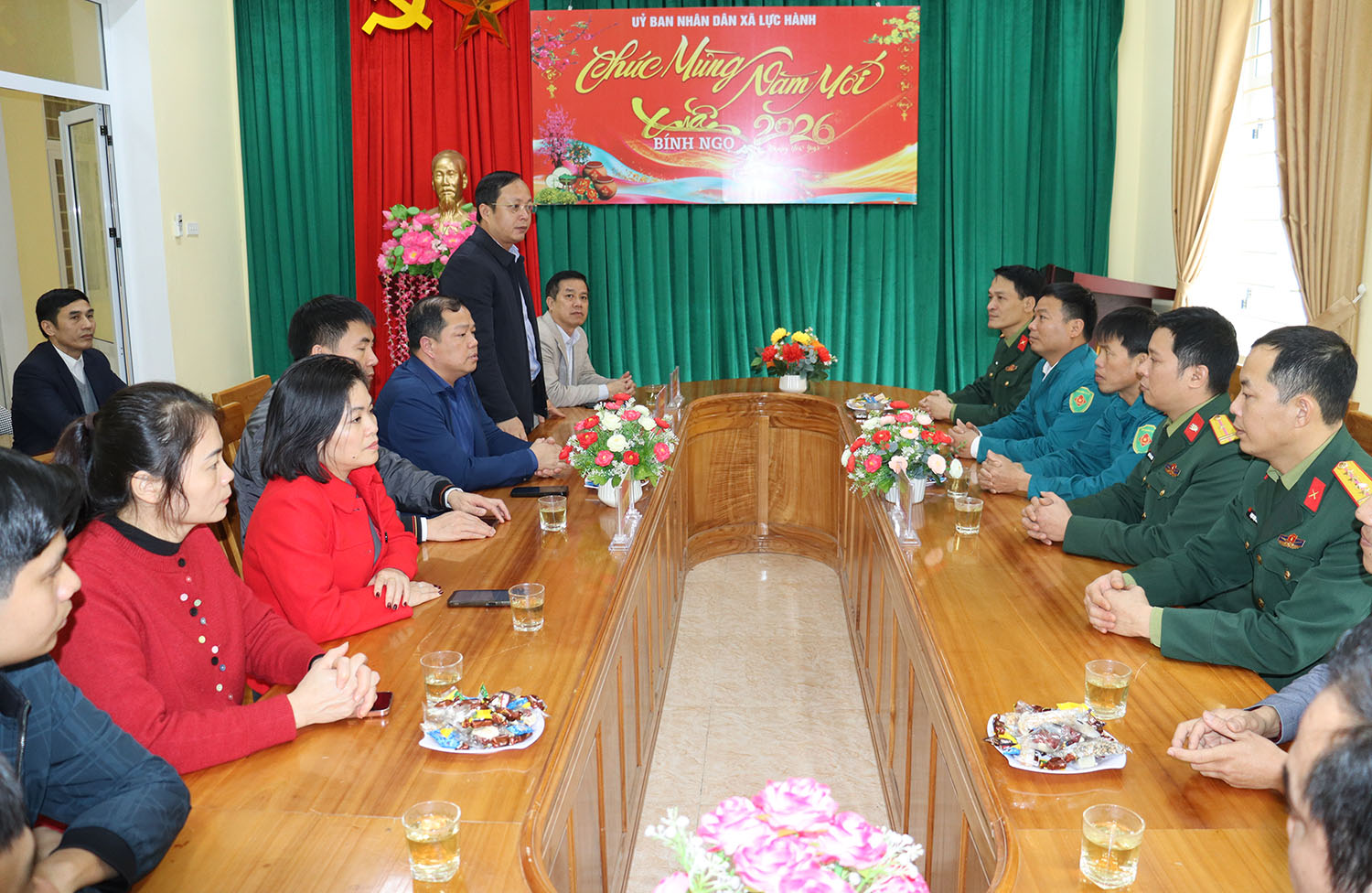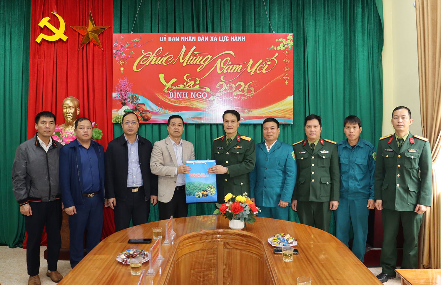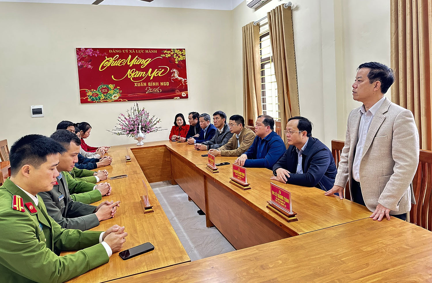 Đoàn chúc tết các đơn vị: Công an, Ban Chỉ huy quân sự, Trung tâm Dịch vụ công, Trạm y tế xã