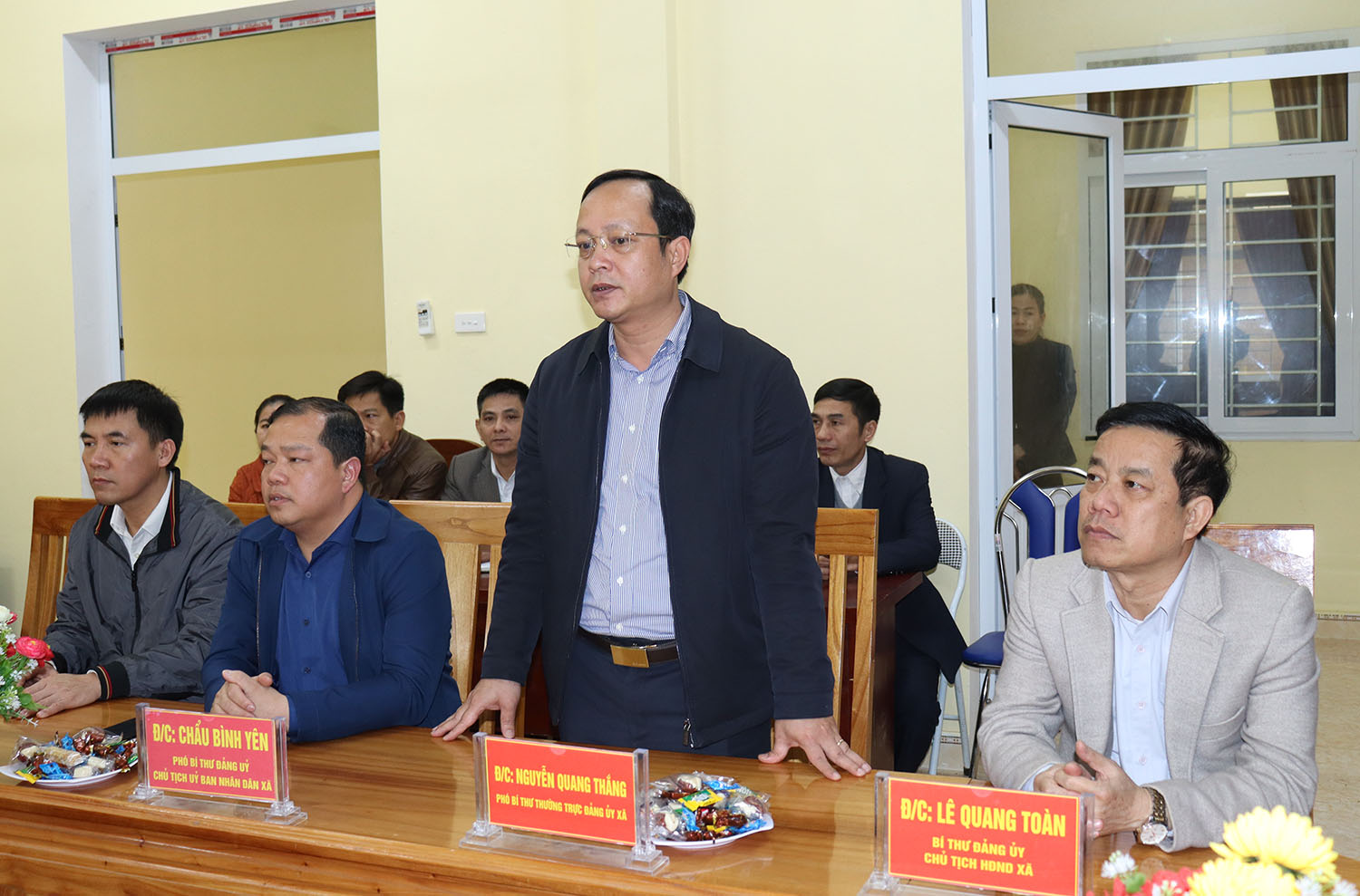 Đi cùng đoàn có các đồng chí Ủy viên BTV Đảng ủy, Ủy viên BCH Đảng bộ xã, Lãnh đạo các cơ quan Đảng, HĐND, UBND, Ủy ban MTTQ xã.