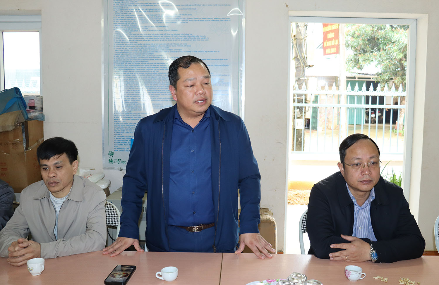 Các đồng chí Thường trực Đảng ủy xã động viên các đơn vị trực, làm nhiệm vụ tết