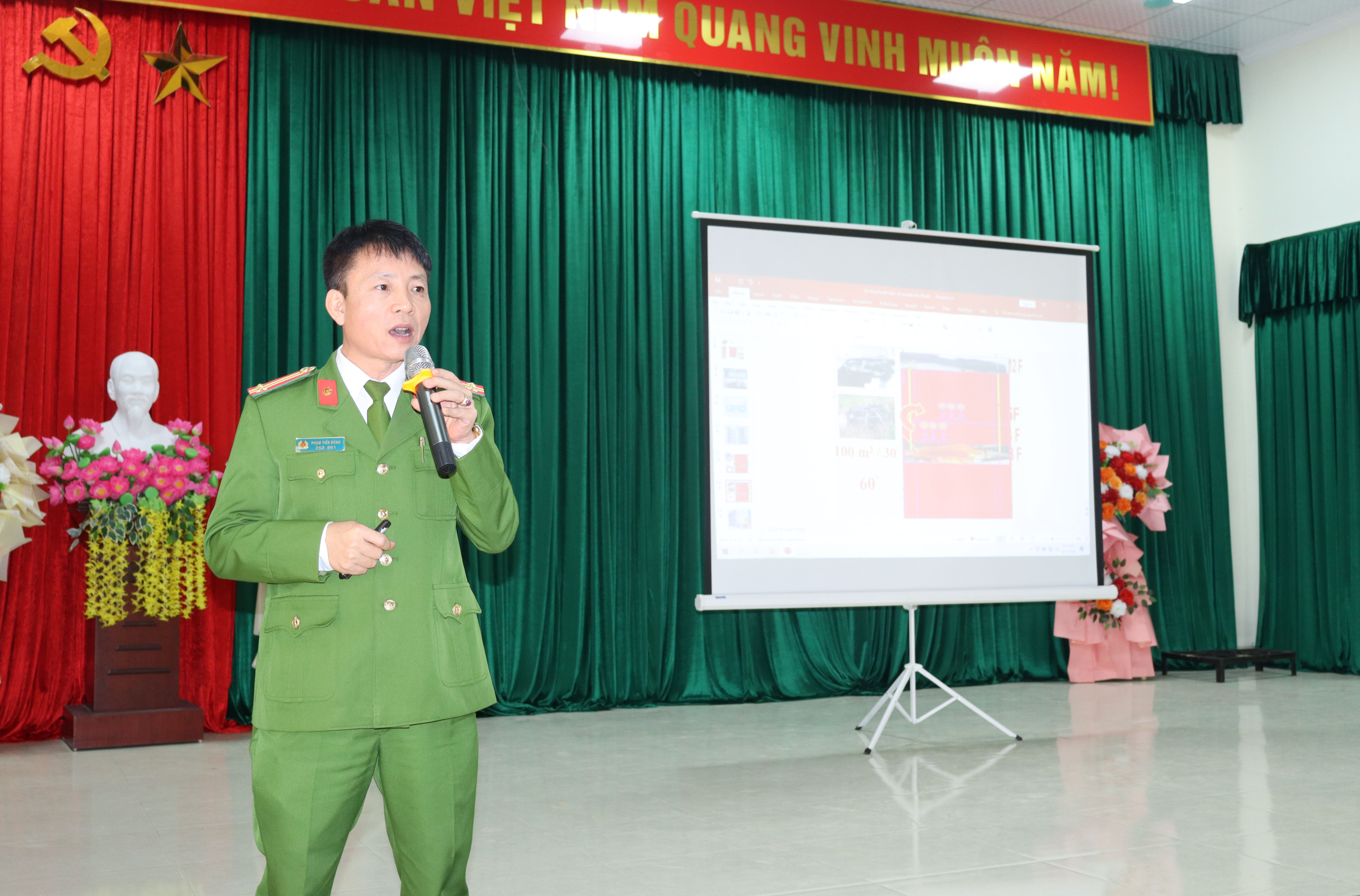 Cán bộ Phòng Cảnh sát PCCC và CNCH phổ biến kiến thức pháp luật và các biện pháp bảo đảm an toàn PCCC và CNCH