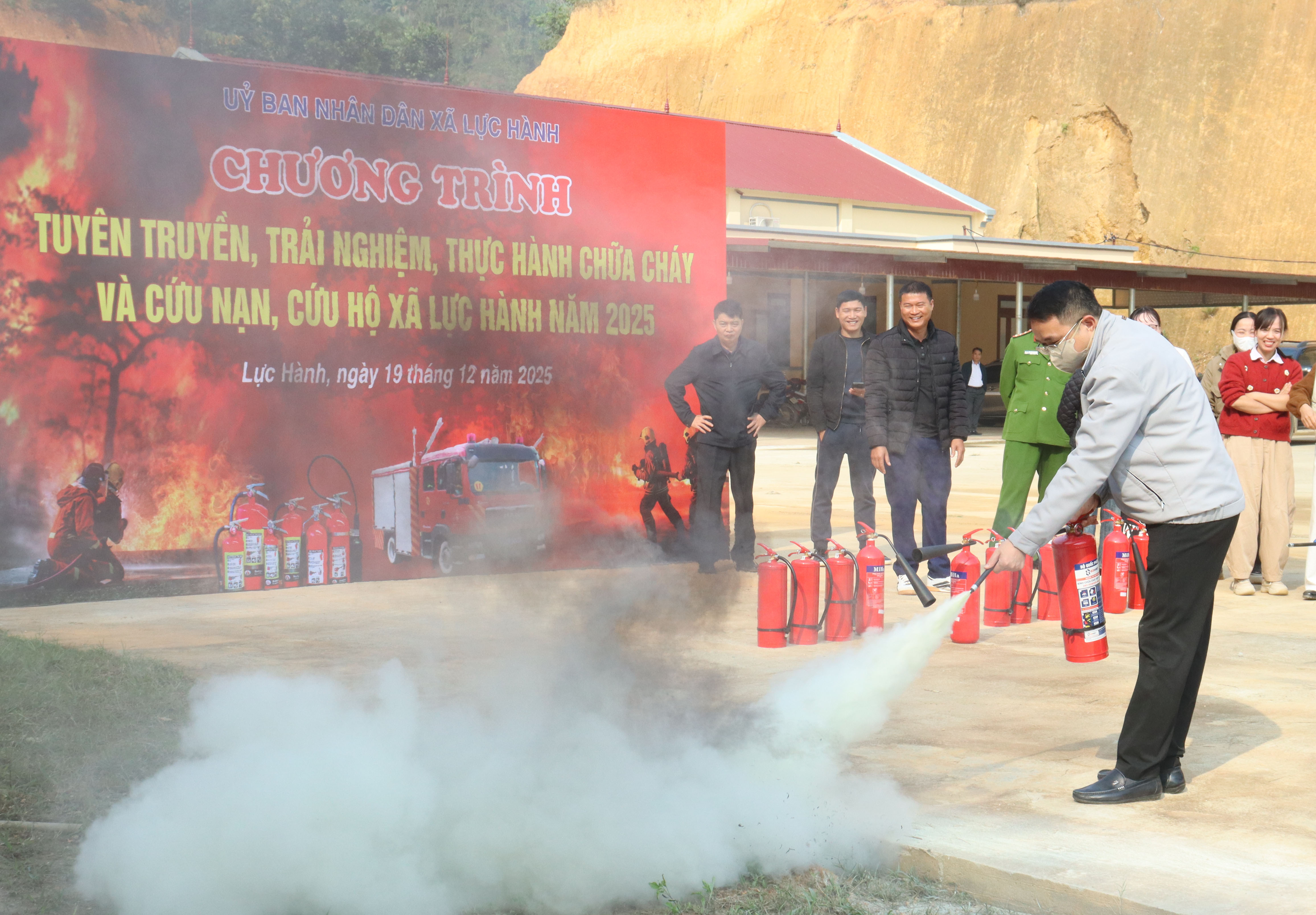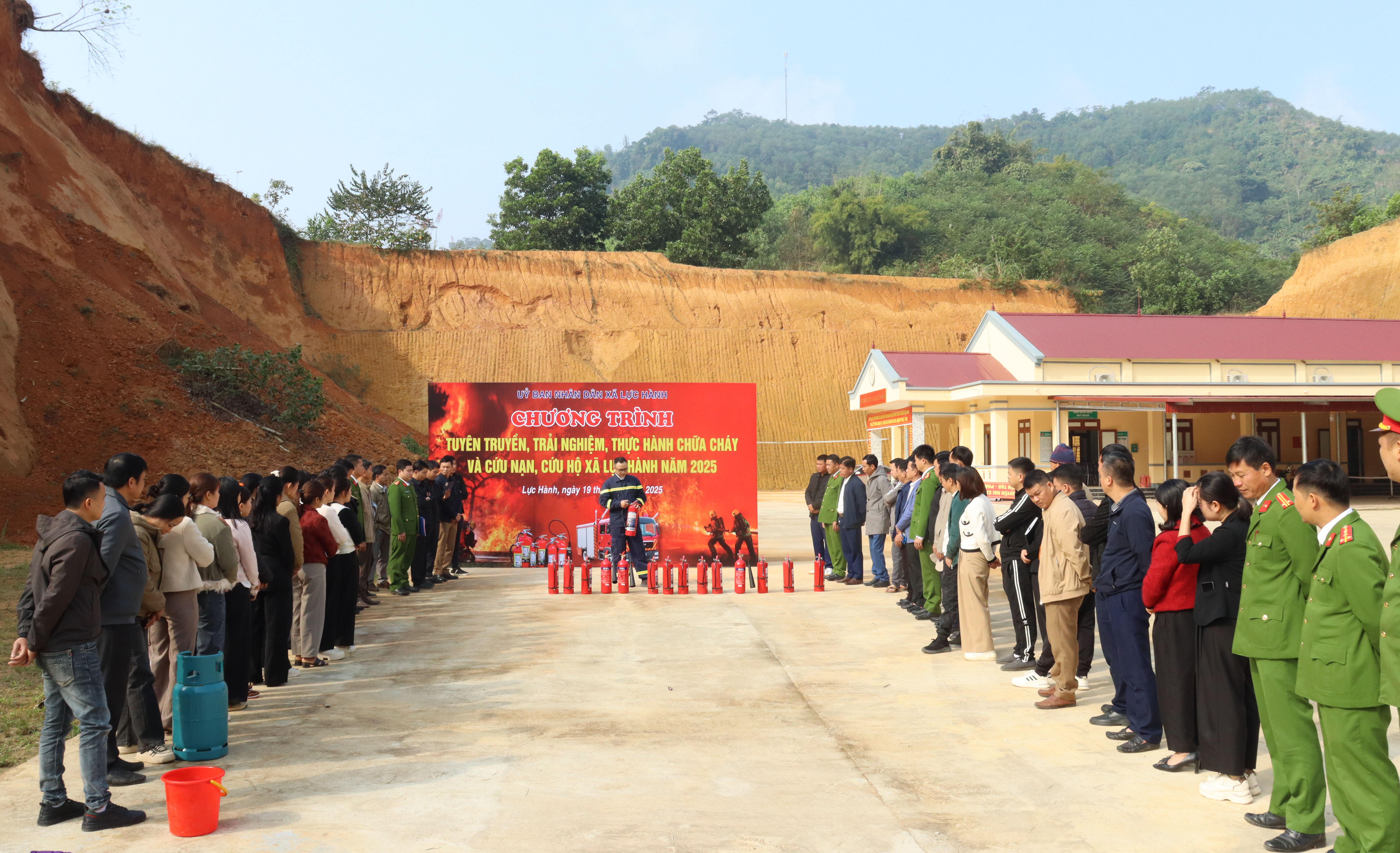 Các đại biểu dự Chương trình tuyên truyền, trải nghiệm thực hành chữa cháy và cứu nạn cứu hộ xã Lực Hành năm 2025