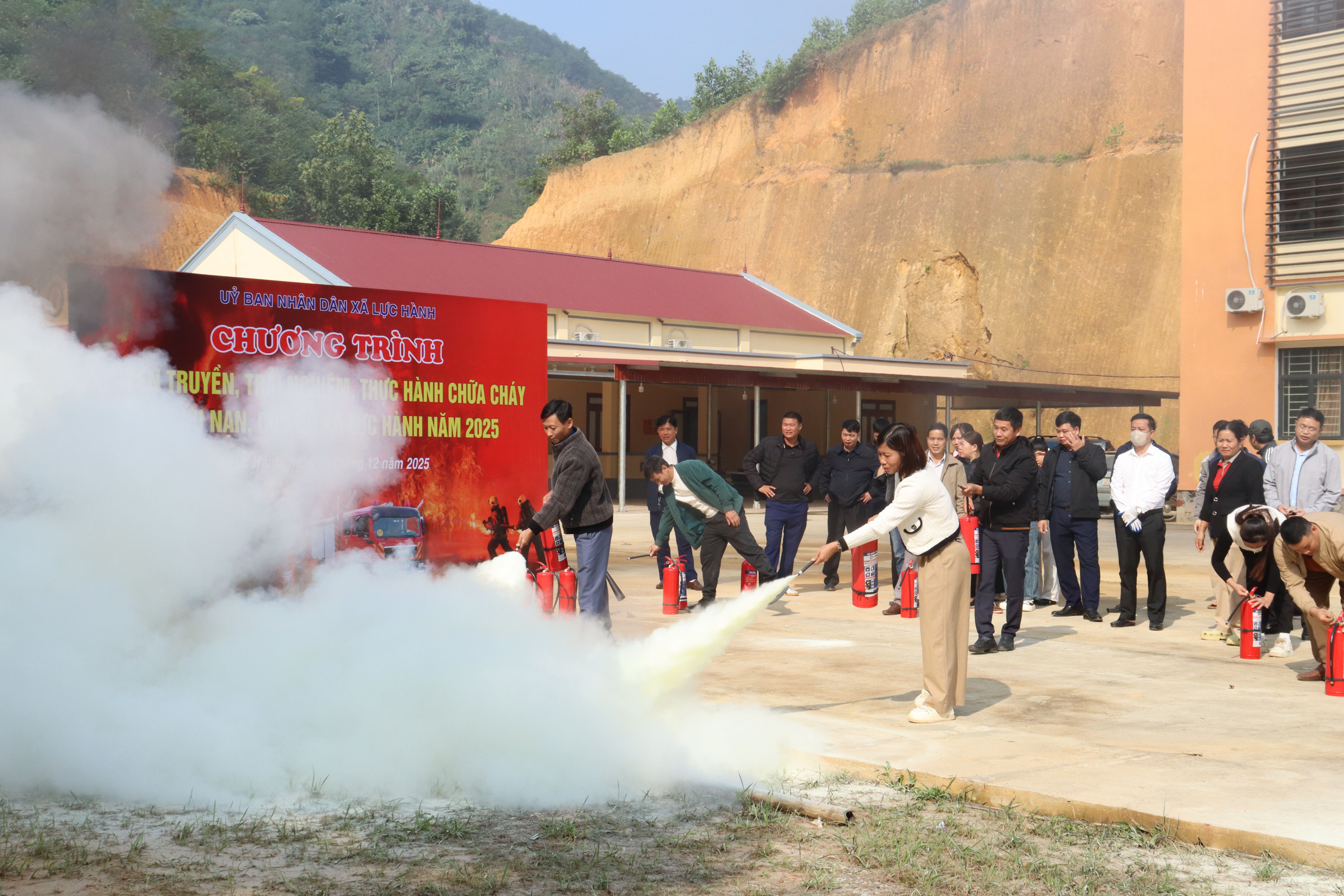 Tại chương trình, cán bộ, giáo viên và người dân đã được trực tiếp trải nghiệm và thực hành các bước chữa cháy để có được kỹ năng xử lý tình huống thực tế; thực hành sử dụng phương tiện chữa cháy, bình chữa cháy để dập tắt đám cháy...